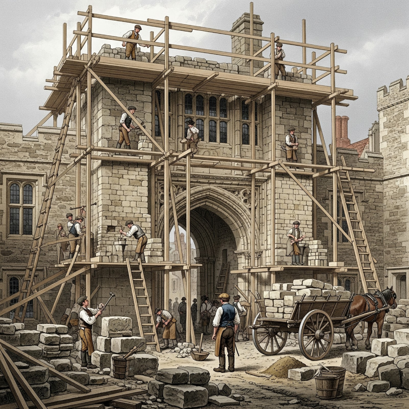 Major restoration works are undertaken on the great hall, it’s collection of Horseshoes and the curtain wall.