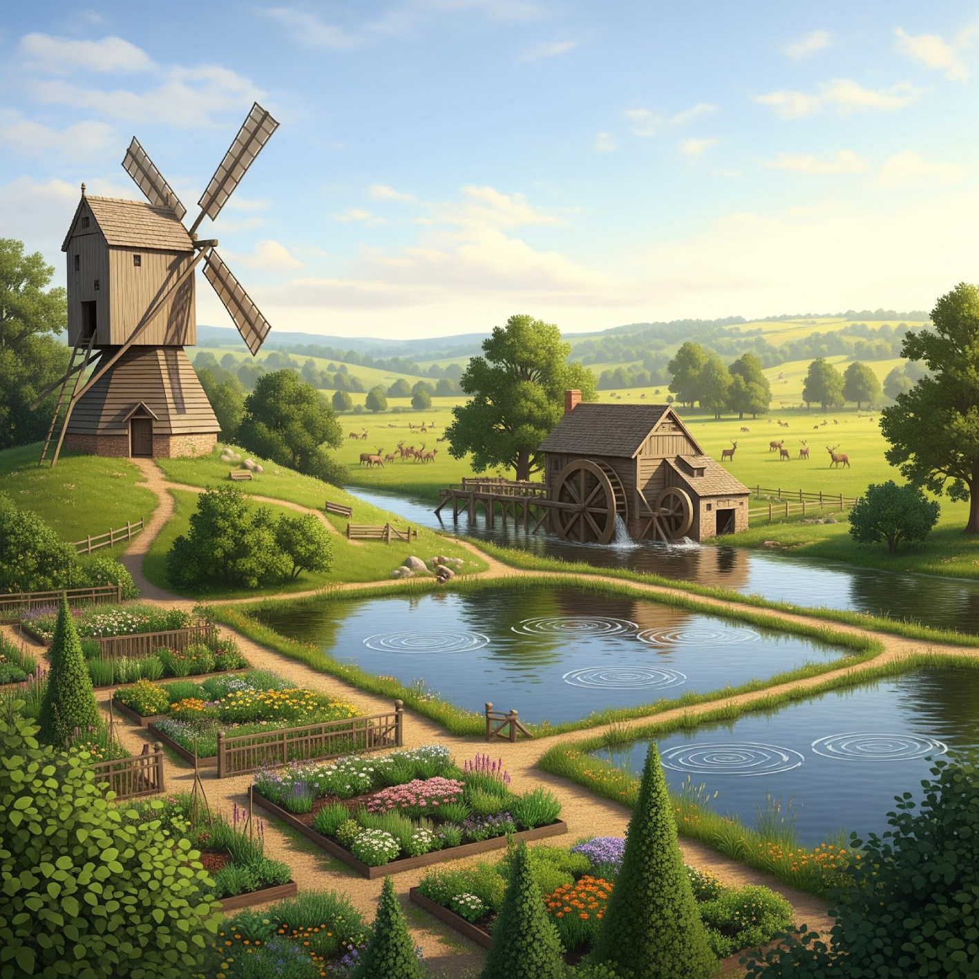 A garden, fishponds, windmill, water-mill, and deer parks are noted in the inquisition post mortem following the death of Richard Earl of Cornwall
